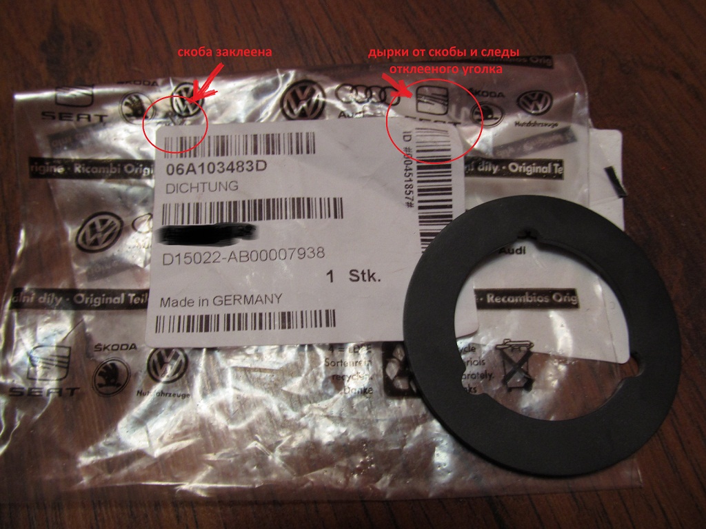 Уже второй раз замечаю за Autodoc нечестность. 1) В коробке от лемфердер лежали подушки для двигателя кортеко. Пломб на коробках не было. Тогда время поджимало и было не до разборок. 2) Сейчас готовил на завтра уплотнительную резинку крышки маслозаливной, заметил, что оригинальный германский пакетик был на двух скобах, которые заклеены германской наклейкой. Дык с одной стороны наклеечку явно отклеивали и одной скобы нет (остались дырки), а сверху российская наклейка Autodoc О_о Теперь я сомневаюсь, что это оригинал Вот сволочи, даже на такой мелочи в 60 рублей дурят. :frustrate Россию не изменить... Скажите Exist в таком был замечен? Хочу перестать закупаться в Autodoc и покупать в проверенном месте, без дуристики. Посоветуйте нормального продавца. Вот фото: смог достать резинку без особо видимых повреждений.