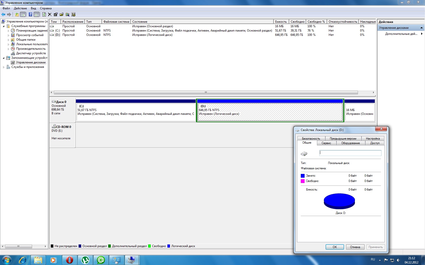 Вчера подхватил какой-то вирус. Пролечил курейтом... После перезагрузки система так и не запустилась.... Пол дня пытался восстановить загрузку, не пошло... В итоге снёс систему и переставил заново. Теперь проблема... Один физический диск на 750 гб поделён на С (система) и D (Файлопомойка) Так вот, D не открывается, в свойствах 0мб, пишет "нет доступа" Как исправить?