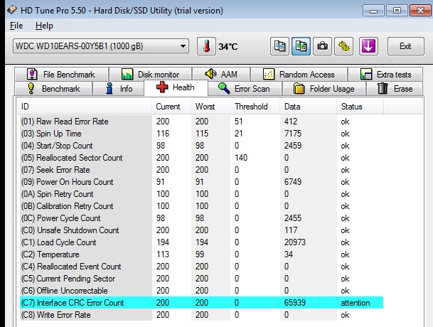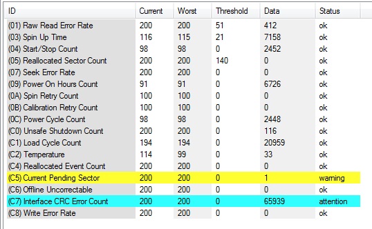 akrivcov, тебе KEKS намекнул, что скрин надо не обрезать, а выложить с верхушкой, где написана модель винта, грины ониж разные тоже бывают: WD10EACS, WD10EADS, WD10EZRX ... Насчет синенького я бы не парился (точно не знаю что это), а вот желтый - это претендент на битый сектор. Я бы полную проверку сделал диска. Мож спецы что лучше посоветуют.