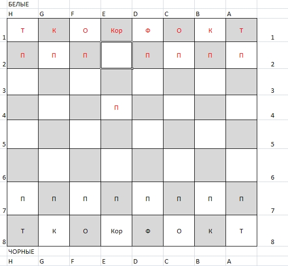 Ради изничтожения уныния и внесения разнообразия предлагаю Вам такую игру. Дикие шахматы. Правила такие: 1. Ходит любой форумчанин, кто первым успел; 2. Требуется однако соблюдать очередность шагов и шахматные правила; 3. Один и тот же чел может ходить и за белых и за чорных (если успеет); 4. Для того, чтобы "застолбить" свой ход за собой предлагаю во-первых отписаться в теме о вашем ходе и во-вторых запостить в тему прикрепленным файлом скриншот шахматной доски с вашим последним ходом. Файл (Екселевский) для пролетарской игры прилагаю.(http://rghost.ru/42104786)