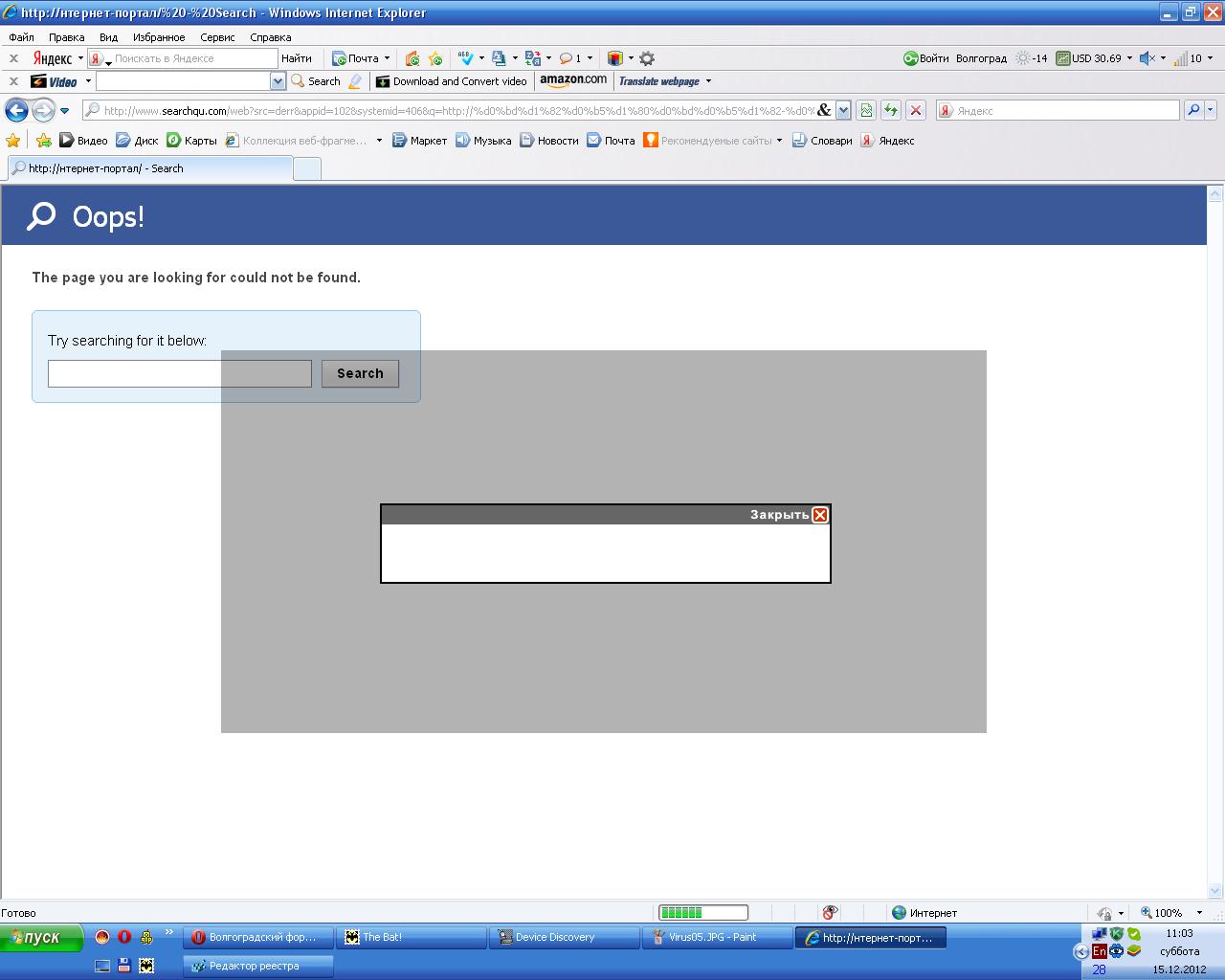 Странная беда пришла ко мне... Самое интересное Касперский его не видит. Вирус или что то непонятное отображается на обоих компах одинаково. Так мало того и в браузере планшета он так же показывает себя. Причем в любом браузере. В Internet Explorer (я им не пользуюсь) я обнаружил вот такую хрень при открытии страницы (на скрине) При нажатии закрыть этот баннер, открывается ссылка на разные сайты. Картинки баннеров у меня я так понял блокирует касперский. Но что за напасть напала на все компы и планшет??? Вот даже сейчас пишу этот пост, и висит одновременно этот баннер И прилагаю скрины к этой напасти.