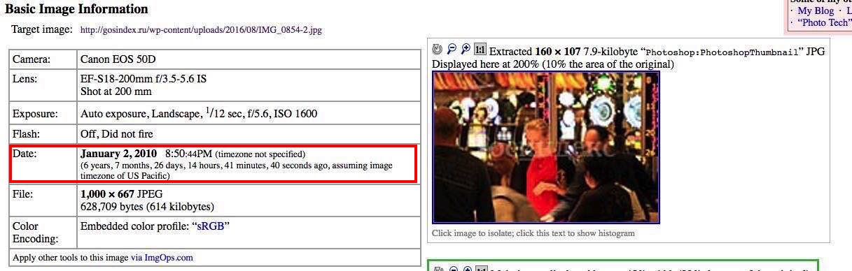 Там дальше ответка: "Во-первых, сам Алексей прекрасно знает, что все метаданные легко исправить и написать там все что угодно. Для этого существует множество сервисов, к примеру вот этот проверяет что написано в метаданных, вот этим ты стираешь все что угодно, а в этом сервисе проставляешь новые метаданные. К сожалению обвиняющего нас Алексея, наша редакция осведомлена об этих инструментах" http://gosindex.ru/news/navalnyj-otpravil-zhenu-i-detej-v-ssha-eksklyuziv Но у запутинцев с логикой похоже не все в порядке. Если метаданные подделаны, то кто их поддделывал? Судя по их логике сами разблачители и подделывали ибо матаданные указывающие на 2010 г. присутсвуют в фотке в их "разоблачительной" статье.