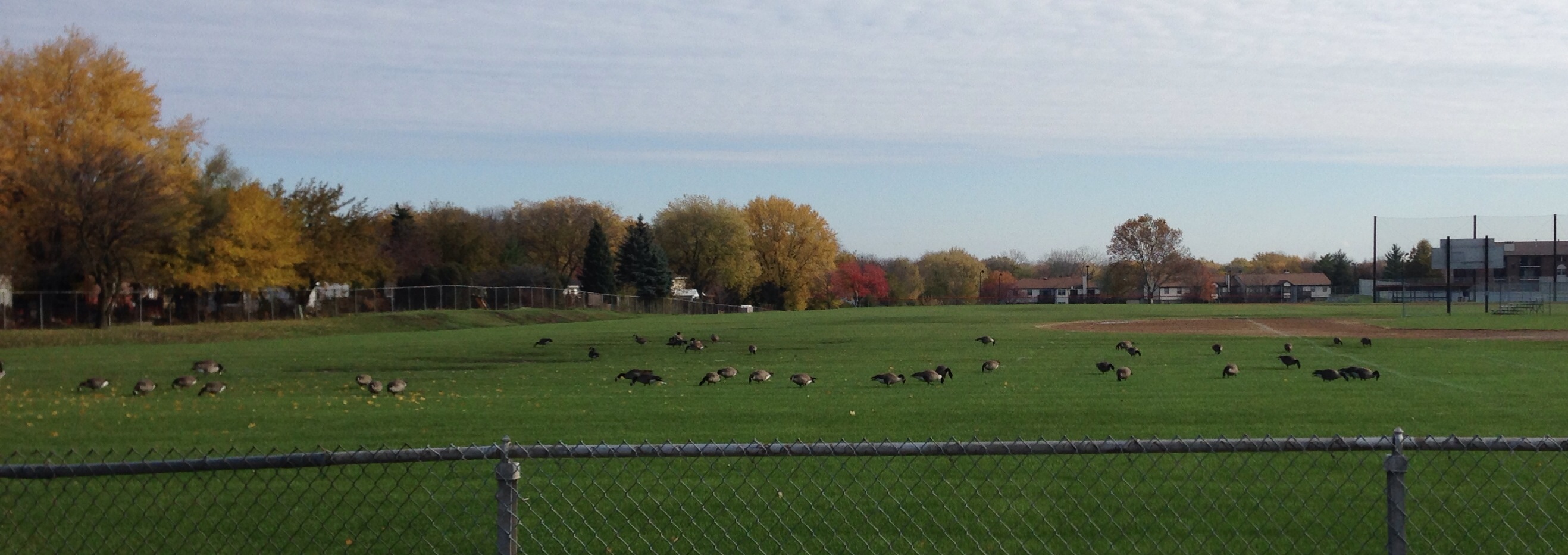 Сегодня мимо самой обыкновенной американской школы проезжал и сфоткал на телефон место для занятия спортом и парк. Сына в школу автобус возит , так вот что бы им не скучно было , планшетники для мультиков установили. Почти каждый день в школе выдают ( дарят ) маленькое лего . Довольно трудно описать насколько трепетное отношение к детям в Америке. Самые жесткие законы , это все что связанно с детьми. По поводу тривдарастов , за пол года не встретил не одного , как и человека в наркотическом или алкогольном опьянении . Перелетные птички кажется называются" канадские гуси" вроде краснокнижные . Остановились перекусить, состояние травы на школьном поле позволяет Канадские гуси - http://canadianletters.com/canada/2006/159_geese.html. http://ru.m.wikipedia.org/wiki/%D0%...8F_%D0%BA%D0%B0%D0%B7%D0%B0%D1%80%D0%BA%D0%B0