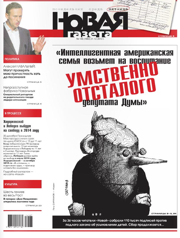 Pashtet, во-первых закон обратной силы не имеет. И тех, кого уже "почти усыновили" всё таки "доусыновят". А во-вторых описаная Вами ситуация конечно противная, но уже на полтона ниже, чем заявленная ранее ---------- Сообщение добавлено 21.12.2012 11:07 ---------- Хорошо. ТАк может вместо того, чтобы воевать с ветрянными мельницами в лице Думы попробовать сделать так, чтобы эти дети не остались без семьи?