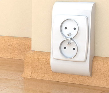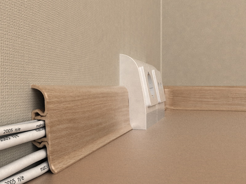 В Волжском видел подобное, где уже не вспомню, но помню, что смысл был такой, накладка является платформой, а разьемы универсальные туда ставятся. Но и плинтус вроде там "гильзованый" должен быть, то есть сначала провода укладываются в специальную антипреновую шину, а на неё уже крепится плинтус (это что касается 220в). Скорее всего в мастеринструменте видал.