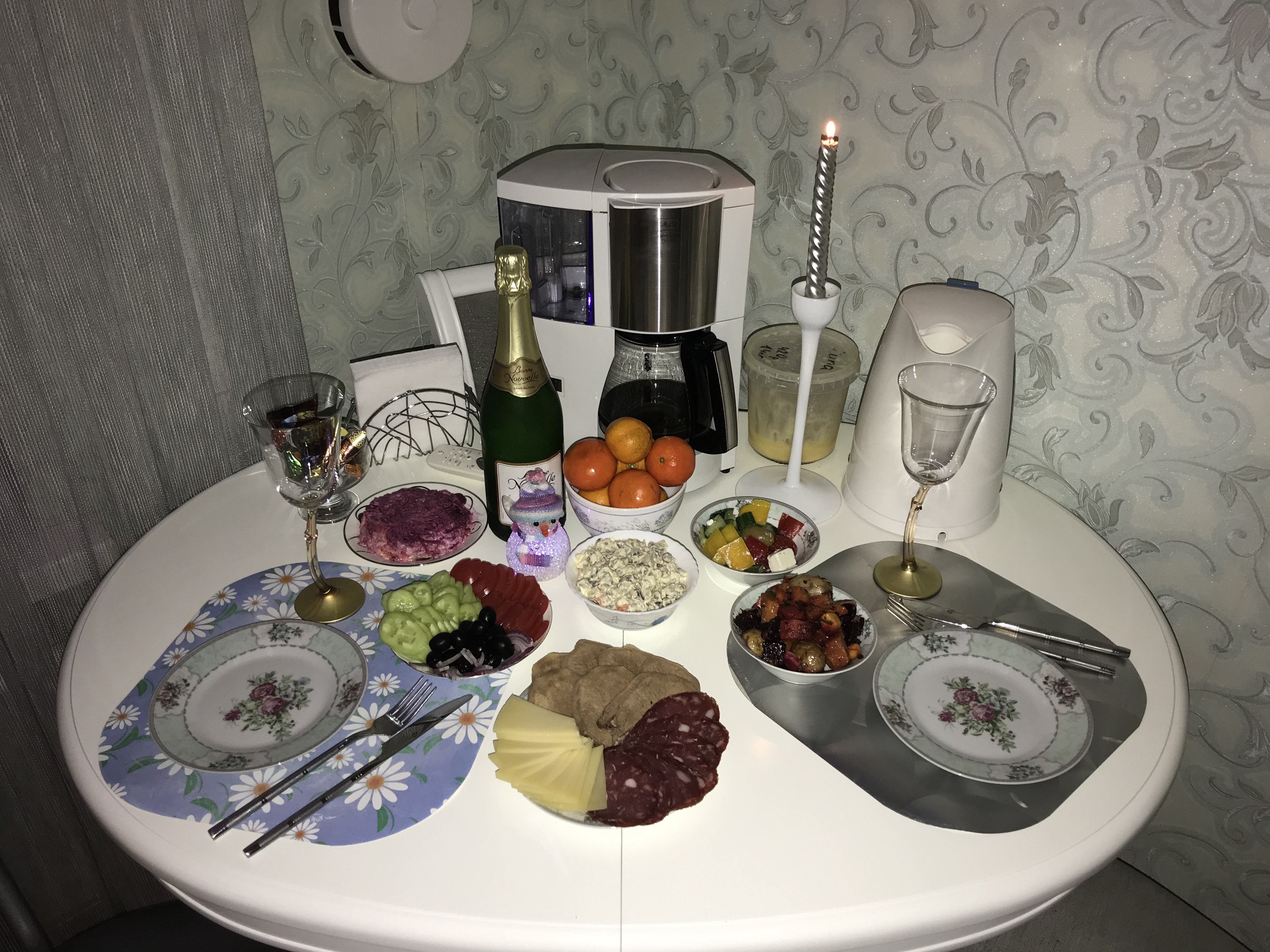 31.12.2019, елки нет, продуктов нет) 19:20 - в коридоре появилась елка, следом продукты, но что-то готовить уже нет времени) 21:00 дома появились салаты из Азбуки вкуса 21:15 нарядилась елка 22:45 и стол готов) А Волгоград уже С Новым Годом!