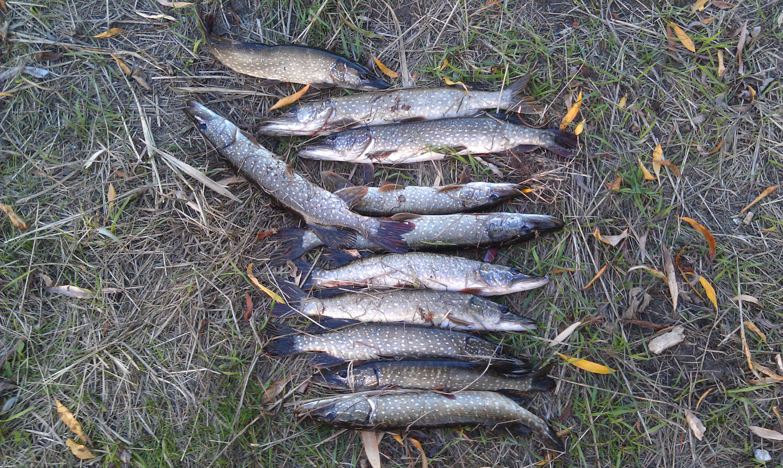 Посмотрел я вчера прогноз погоды на ближайшие дни. И, не имея внедорожника, отпросился пораньше с работы и поехал в Ленинскую пойму. Результат на фото, с пяток помельче после фото отправил подрастать. Ловил в свое удовольствие, приманки менял часто. Ловилось на айко мюллер (пришлось его снять - ловит зараза), джакалл тини магалон, лаки крафт самми, тцурибито дед минноу, косадака такао. Один на редкость косой крокодил срезал у меня плетенку с дед минноу вместе с 20 см поводком. Вода ему пухом. Один из карандашиков был подраненным (на фото). То ли от крокодила, то ли от сетей (нашел на берегу брошенную порезанную сеть).