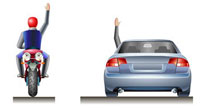 Сигнал торможения подается поднятой вверх левой или правой рукой.