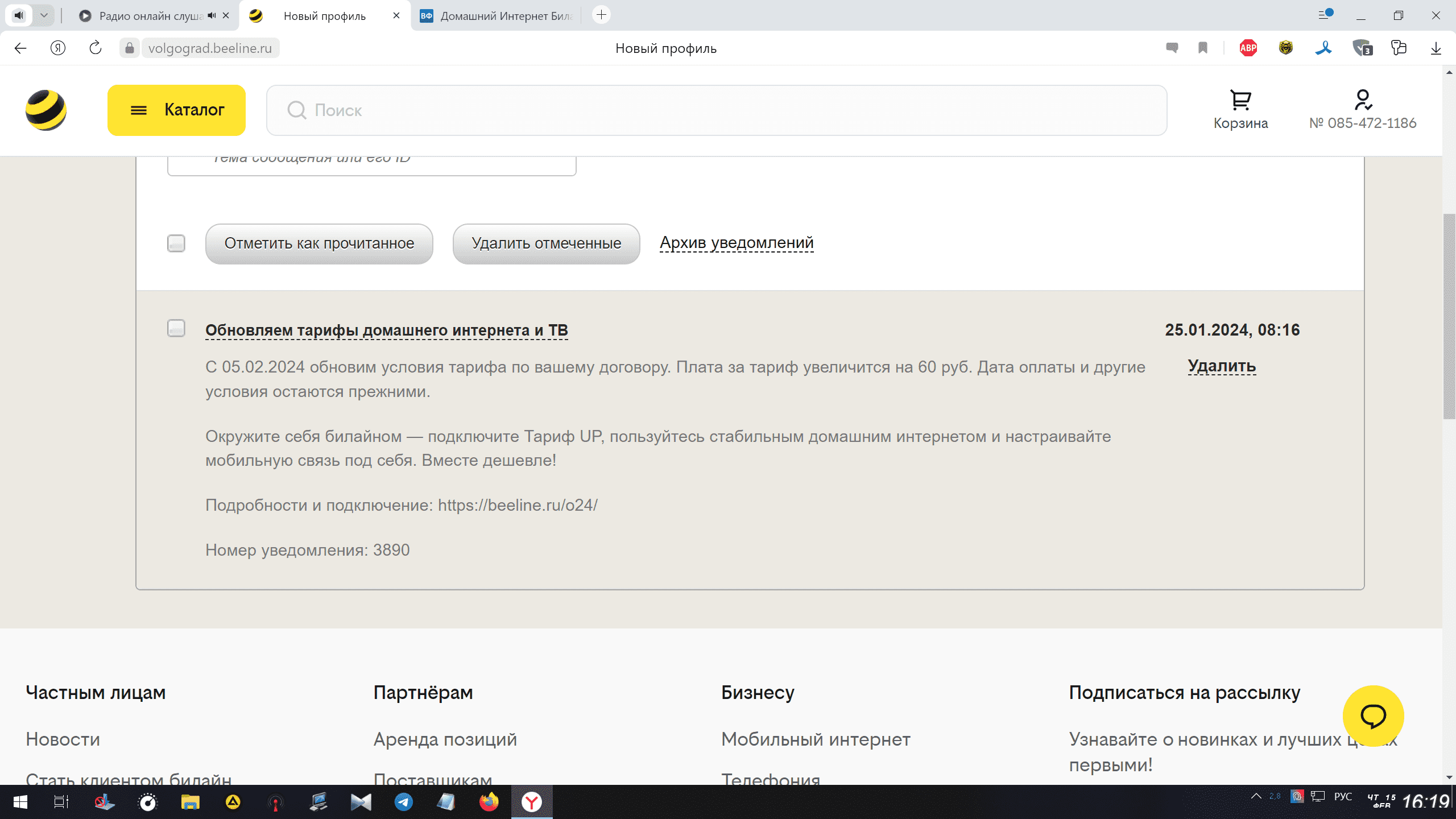 Пришло письмо. Твари. Самое обидное, что уходить некуда, "Связьинформ" не завезли, а у остальных тарифы либо еще выше ("Дом.Ру"), либо качество услуг и сервиса под большим сомнением ("Ростелеком").
