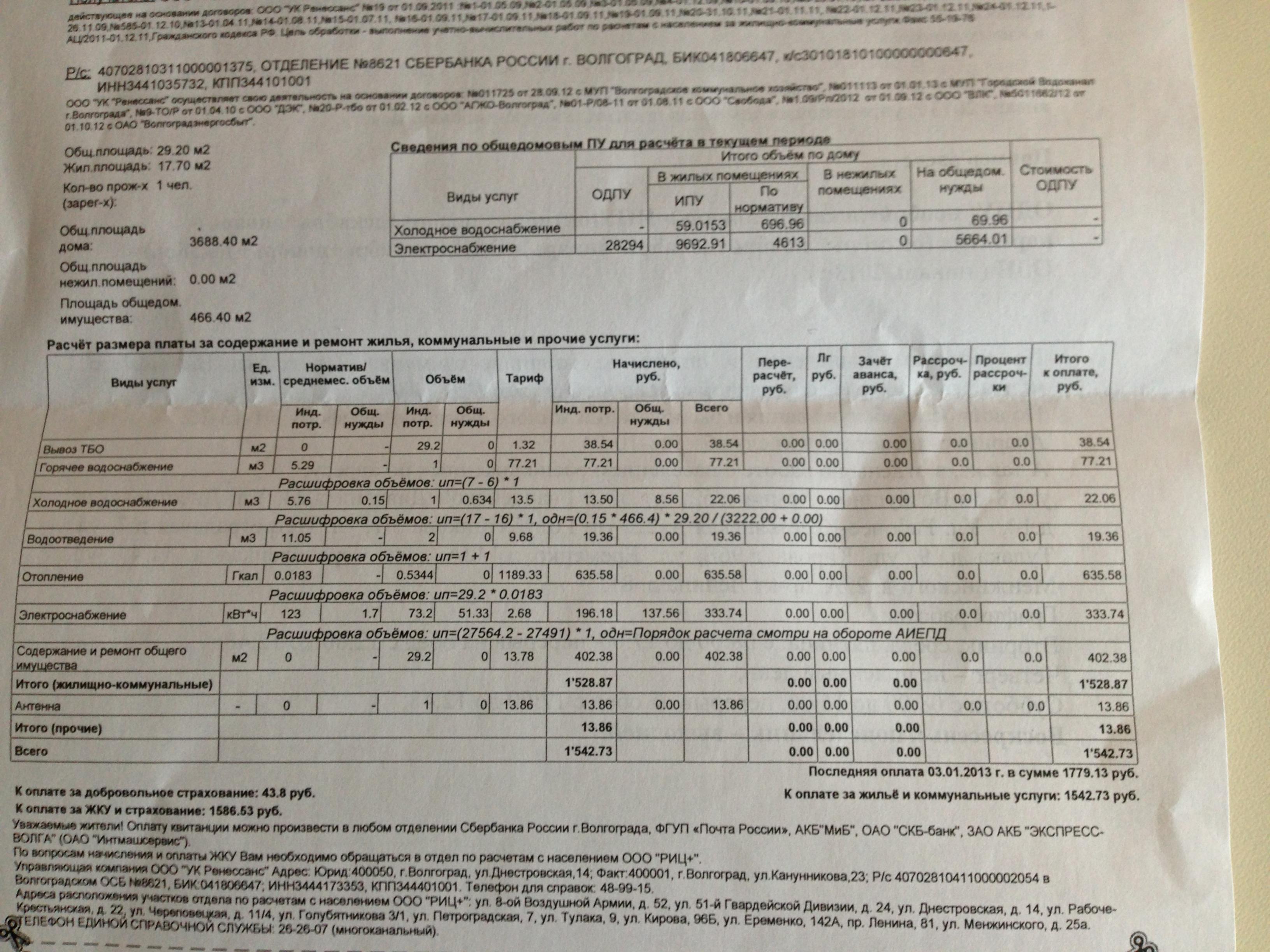 amnesiac, там же в платёжке 333р за электроэнергию, какие доплаты? Просто в квартире, судя по всему, почти не живут. PS: А вот что такое добровольное страхование... ?