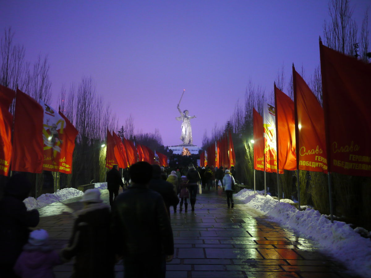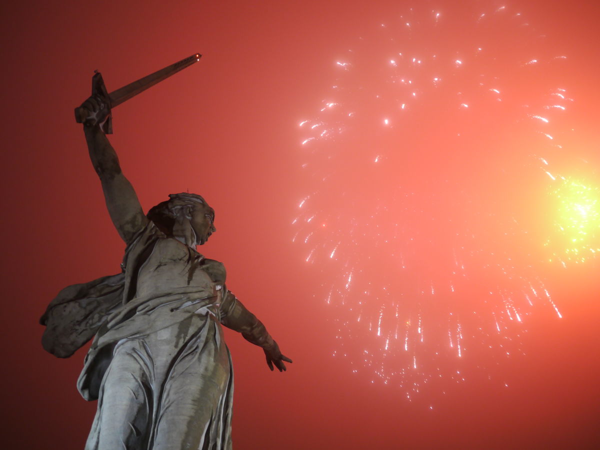 Салют в 18.00 на Мамаевом кургане. Световое представление (7 минут) в 18.30 на площади Павших борцов.