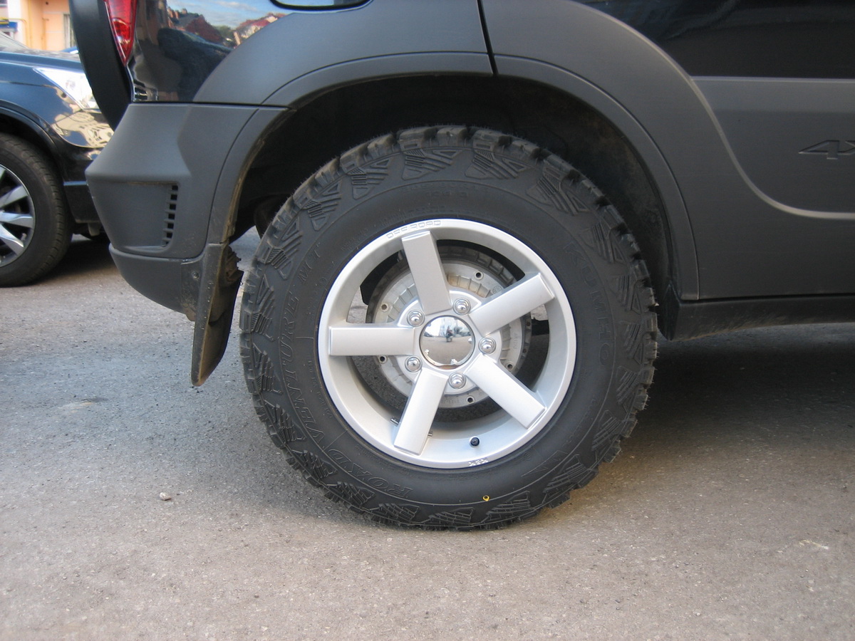 вот Вадим мне кидал сцылку на 17ые диски http://www.kolesaonline.ru/diski.php?firma=&obod=&posad=17.0&otverst=5&pcd=139.7&vilet=&c_hole= да ничего я не скачу, я уже определился на Кумхи, с Ваганом стал разговаривать и зарекнулся про 17ую резину, а он меня спрашивает, а что за резина??, потом говорит в принципе можно иё в Ниву при желании затолкать. Я сразу вспомнил как мы с Антоном приставляли эти Данлопы к его Шниве, и на сколько больше они были чем Кумхи, и опять впал в раздумья. Но походу сделаю я третий вариант, поменяю Данлопы на Кумхи, продам отдельно свои Корды офф роад, оставлю свои старые 15ые диски и вкрячу на них Кумхи , и мне ещё разницы хватит на то, чтоб за работу по установке шноркеля расплатиться.