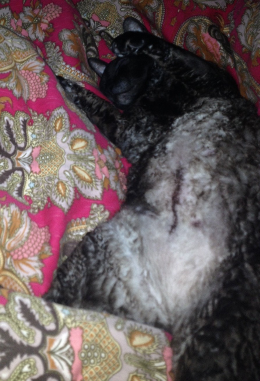 Кот Бакси, видно/не видно для меня вот вообще не важно. Шерсть вырастет и конечно видно не будет. А по-поводу без шва - очень интересный вариант. Попона действительно им сильно мешается, особенно если кошка весь день одна (хозяева на работе), то запросто ее снимет всеми возможными способами и будет лизаться. Так что может эта цена и стоит того..