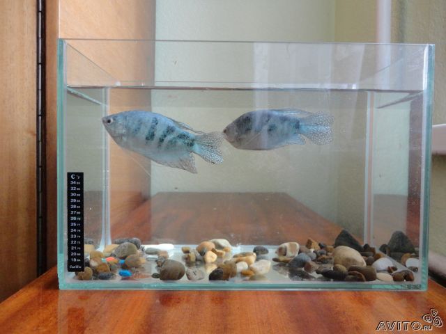 Для гурами нужен аквас не менее 40 литров, а то что на фото просто издевательство. Забрала бы в свой 150-литровый, где у меня сейчас стайка гурами живет, чтобы спасти рыб, но, конечно, вы их не отдадите просто так.