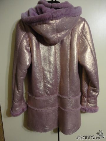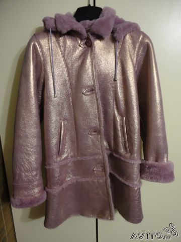 Натуральная дубленка с лазерной обработкой Цвет бледно-сиреневый с золотым Капюшон отстегивается Отличное состояние Длинна по спинке - 70 см, рукав развернутый - 58см. Детка одевала несколько раз, исключительно "на выход", по душе ей не пришлась. Оговорюсь сразу - не теплая, как это считается "европейская". Цена 2.5 т.р., торг.