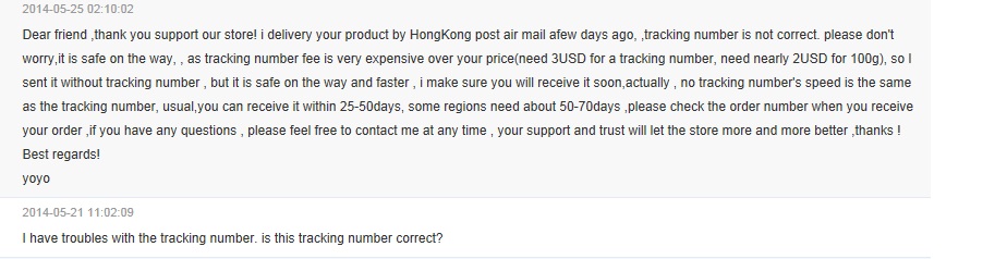 Kairel, хорошо, давайте уточним для вышеусредненного мозга покупателя. Бывают регистрируемые почтовые отправления и не регистрируемые почтовые отправления (вот их для усредненного мозга и называют без трековыми). У меня нет информации что на почте Китая не существует не регистрируемых почтовых отправлений или что они стоят столько же, сколько регистрируемые. Наоборот, видел упоминание о цене в 8 юаней за регистрацию почтового отправления. Слышал только что активным клиентам почта Китая предоставляет скидки на стоимость пересылки. Возможно для них и нет разницы как отправлять. В России все входящие не регистрируемые почтовые отправления становятся регистрируемыми и им присваивается код вида RxxxxxxxRU. Почему нашей почте взбрело в голову сменить трек на регистрируемом почтовом отправлении это вопрос к конкретному работнику почты. По правилам UPU не должны.
