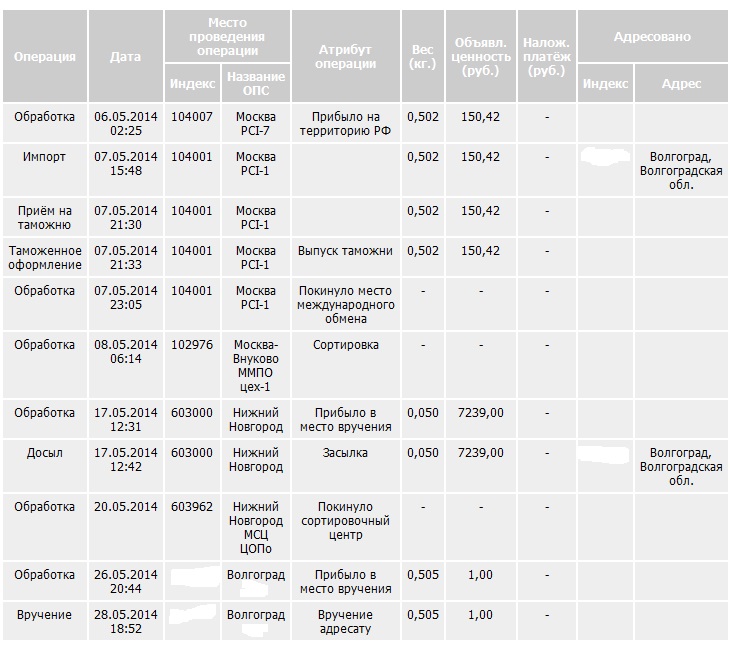 azav, На китайской почте, как и на русской, как и вообще в мире безтрековых посылок не бывает Вы не путайте отсутствие трека с треками вида Lxxxxxx и Axxxxxxx, которые отслеживаются только при перемещении внутри страны. Про отсутствие трека продавцы говорят в расчете на сильноусредненный мозг покупателя, который не в состоянии осилить, что бывают разные треки. Ну и не разу не видел китайскую посылку с Lxxxxxx. Банально потому что трекинг в Китае бесплатный, в отличии от США и прочих развитых стран. Это у меня информация непосредственно от знакомых в Китае, от которых я посылки получал Да шо ви говорите! Изучите регламент UPU ---------- Сообщение добавлено 04.06.2014 10:58 ---------- И вот по поводу смену номеров нашей почтой трек RG001261271MY Втут до середины мая вообще был только экспорт. Сейчас смотрю таки ВНЕЗАПНО вручение появилось. ПРи том что нашлепка на посылке с российским треком. На сайте малазийской почты статус о вручении появился на следующий день от фактического. Я не знаю как это работает, но все посылки со сменными номерами у меня так или иначе но отслеживались до конца по исходному треку