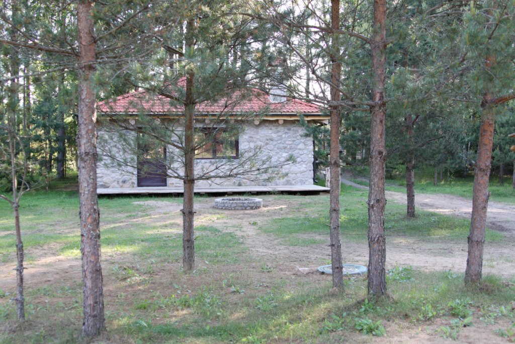 1 дом: застекленная веранда, как раз её и видно на фото, прихожая, сауна, туалет, ванна, кладовая, гостиная, кухня, на втором спальная, спальня с душем и туалетом и гардеробом, спальня, спальня, туалет и душ. 2 дом: коридор, две кладовые, сауна, туалет, душ, прихожая, кухня-столовая-гостиная (всё вместе, не знаю как зовется), на втором четыре спальни, туалет. Именно у этих идея такая, как дачный вариант, но и как жить они не маленькие. На участке еще есть гараж со вторым этажом, два хозблока, и вот мангальная (беседка или как это здание называют не знаю) и причал для лодки