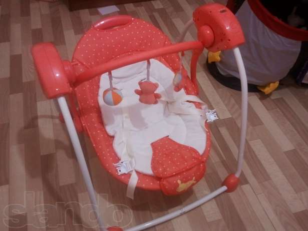Качели электронные Happy Baby Charlie (Хэппи Беби Чарли) Основные характеристики: •предназначены для детей весом от 3 до 11 кг мягкий съемный вкладыш на сидение •2 положения наклона спинки •5-ти точечные ремни безопасности •музыкальный блок c приятными мелодиями таймер отключения 8, 15, 30 минут •5 скоростей качания •съемная дуга с игрушками •Приятные особенности электронных качелей Happy Baby Charlie: электронные качели производят медленные мягкие качающие движения, идеальные для вашего малыша. Качание сопровождается приятной мелодией, развивающей слух, а мягкие игрушки развивают тактильные ощущения ребеночка и не дадут ему соскучиться! От качелей в восторге будет не только ребенок, но и мама – она на время сможет освободить руки и заняться домашними делами. ЦЕНА 2000руб