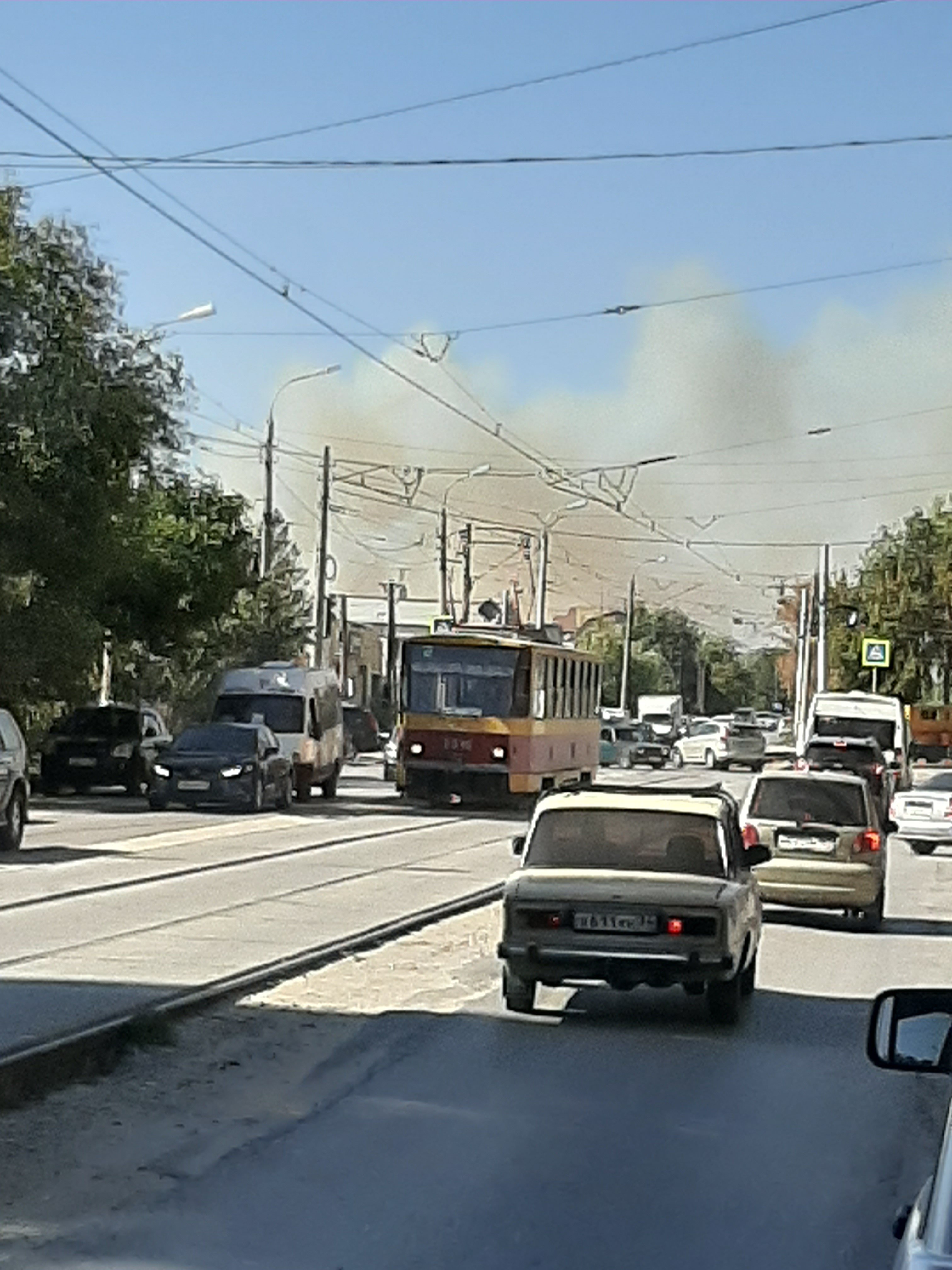 Дым на Дворце спорта хорошо видно. Сначала думал, что завод дымит, потом смотрю, ветер, наоборот, в сторону завода дует. Из-за Мамаева кургана в сторону Волги густой дымный шлейф.