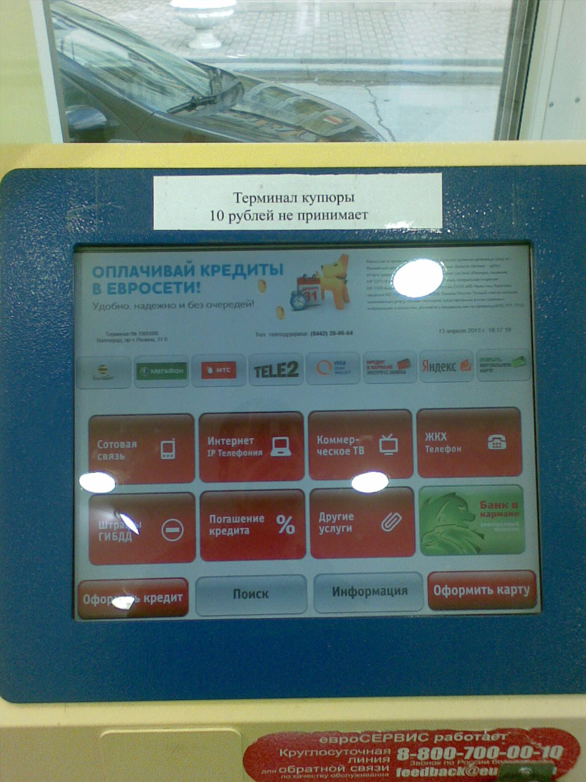 Добрый день. Сегодня зашёл в один из филиалов Евросеть, на проспекте Ленина 31Б, положить денежки на телефон в автомат. По привычке ткнул в значёк своего Билайна, и сунул 50 р. Далее автомат выдал мне, что комиссия 25 рублей :bigeyes: