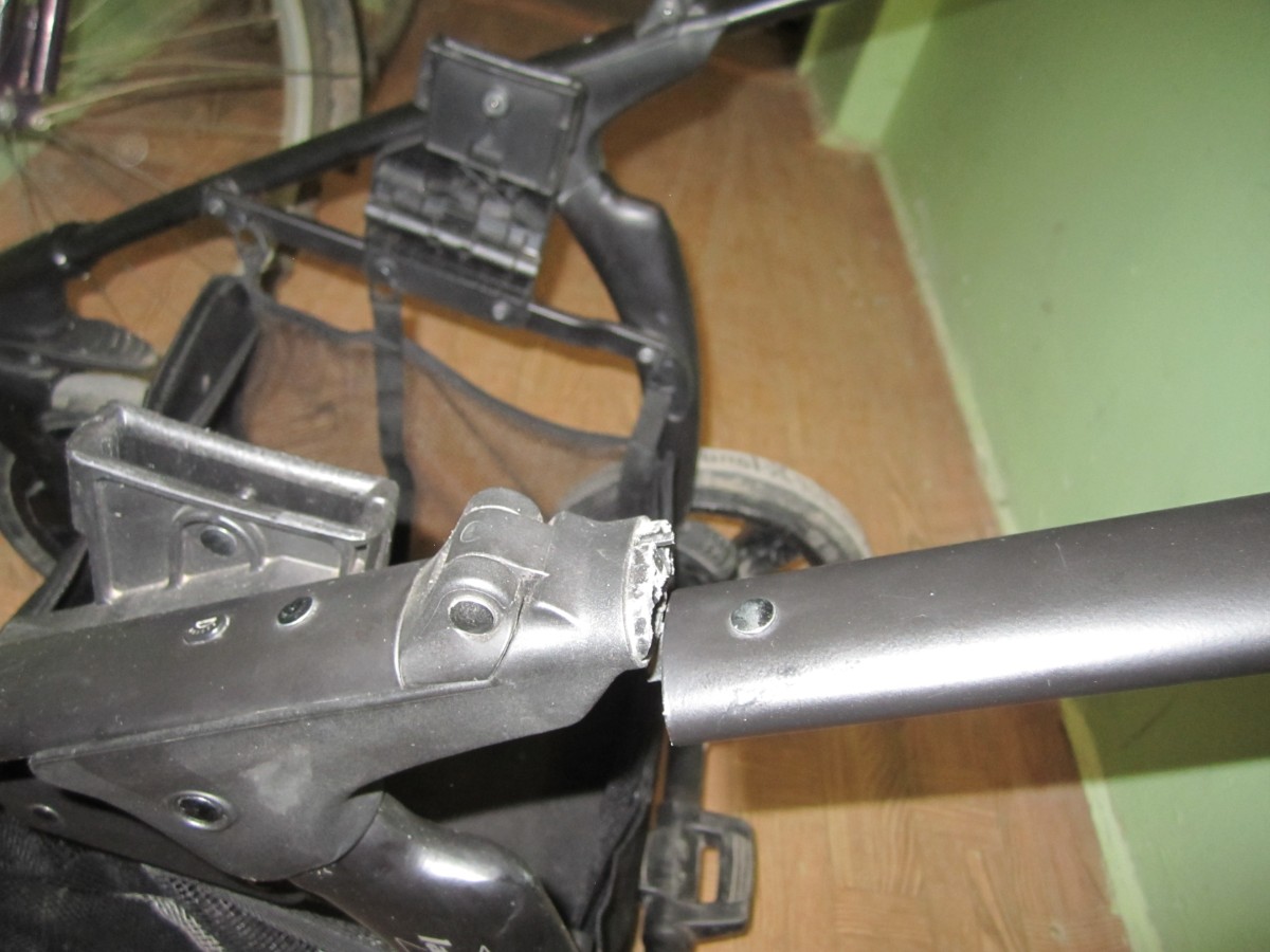 Прогулка X-Lander X-Move. Суть в том, что в месте складывания ручка пластиковая...т.е. сначала идет металл, потом пластик, затем снова металл... Пластик оказался слабоват... Внутри проходит стержень из металла, он вероятно из порошка - обломился. Эффект как будто отрезали. В нете нарыл про вариант холодной сваркой... но народ пишет, что это не на долго поможет... Есть вариант наложить "шину" - нужен исполнитель (мастер, СЦ) НО! Подлость ситуации в том, что если накладывать шину - то складываться уже больше не будет.................