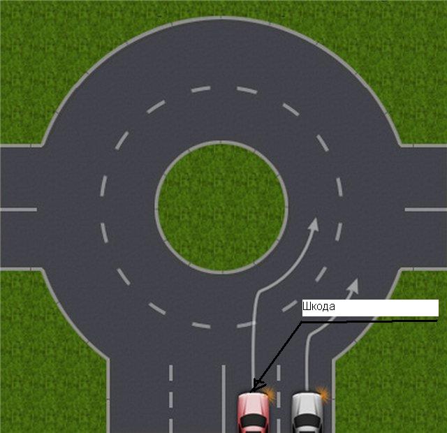 Заняв 3-60 из 9-20 при 2-х полосах из-под моста, из которых левая не занята, невозможно вынудить изменить ни направление, ни скорость. Если у Шкоды при въезде на круг была помеха справа, и он уходил от нее влево, то это - нарушение, вспомним ролик Леши с "Дождя": он не имел право в этой ситуации въезжать на круг. Опасность была в том, что за Шкодой надо было всё время присматривать, что, согласитесь, на кругу, да еще овальном, в оживленное время не каждому удастся. Я не убедилась в безопасности траектории Шкоды и заняла места больше, чем мне требовалось, чтобы проехать этот перекрёсток, этим создала опасную ситуацию, но у меня есть оправдание: обочина сливалась с ПЧ. А на этой дороге по ГОСТ должна быть нарисована обочина. Будь она нарисована, ПЧ казалась бы на 4,5 метра уже. Так что лишний метр, который я себе взяла, с лихвой нивелируется этим обстоятельством, а также - овалом клумбы: через несколько метров я вернулась бы к бордюру как ни в чем не бывало. Если бы я заехала так далеко, что между мной и бордюром проехала бы Шкода, то Шкода должна была бы попытаться влезть между мной и бордюром, чтобы соблюсти ПДД насчет крайнего положения, как его понимал водитель (только что останется на суде от его этого понимания, не известно, уверена, что адвокат будет убеждать его забыть этот аргумент). В 1,5 м не пролез бы даже Матиз. Так что из крайней левой полосы я не вышла ни по ГОСТу, ни по жизни.