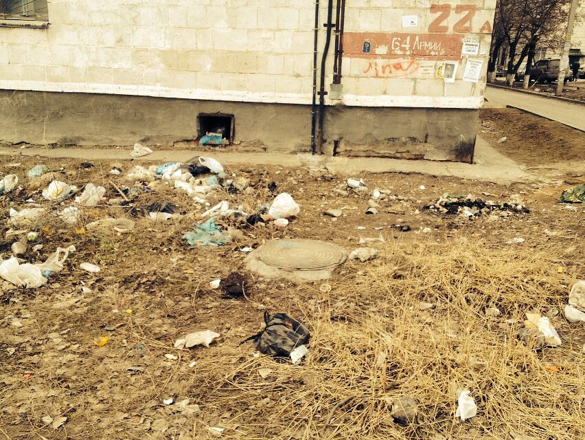 Очередной фоторепортаж про "отпетых свиней" по адресу ул.64-й Армии, 22а (общага). И баки мусорные там стоят, и много их, но вот почему-то выкинуть в окно свиньям приятней. Мне кажется свиньи даже соревнуются друг с другом.