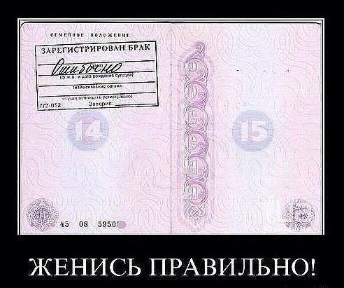 Подумай о будущем. Положи 1000 рублей в карман зимней куртки. ---------- Сообщение добавлено 02.04.2014 20:04 ---------- У нас один знакомый недавно паспорт менял. Теперь он холост.
