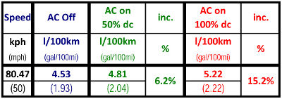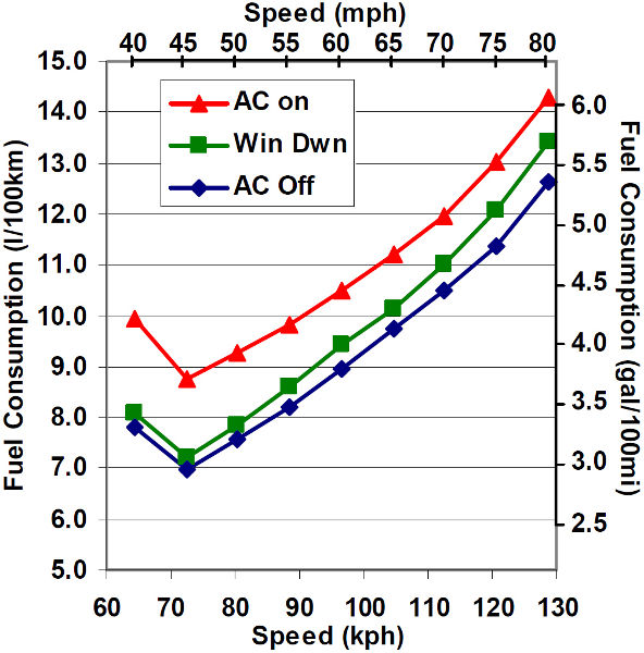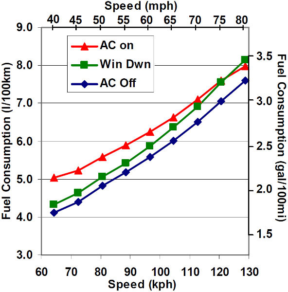 Дам вам немного фактов, господа, что-бы развеять субъективные ощущения. Буквально вчера попало в руки исследование, проведённое в Oak Ridge National Laboratory по заказу U.S. Department of Energy. В данном исследовании был изучен повышенный расход топлива при а. полностью открытых 4х окнах, б. включенном на 100% нагрузки кондиционер в. включенном примерно на 50% нагрузки ( до температуры примерно в 22,5°) При исследовании естественно были идентичные температурные условия, как и влажности воздуха. Испльзовались 2 разных автомобиля - Ford Explorer 2009 4.0 V6 и Toyota Corolla 2009 с мотором 1,8 I4. В данной таблице виден расход Короллы на разных скоростях с выключенным кондиционером, открытыми окнами и включенным на полную мощность кондиционером Эти данные хорошо видны на этом графике В этой таблице виден расход Короллы на скорости в 80км/ч с выключенным кондиционером, включенным на 50% и включенным на полную мощность Тоже самое видно по Форду Эксплореру