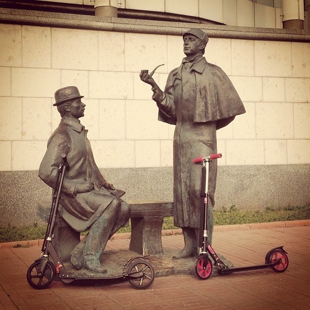 Сегодня в рамках проекта ТурКультур проехались по центру Москвы на самокатах. От Манежной площади вверх к Китай-городу, оттуда на Чистые пруды по Маросейке и Покровке, потом на набережную, потом мимо Кремля, подъем по Васильевскому спуску, проезд по Красной площади, потом Александровский сад и снова Манеж. Маршрут выбрали самый длинный, рассчитанный на 120 минут, правда проехали его за 75 минут Самокаты дают бесплатно, под залог 2000 руб. Вибрации от Собянинской плитки сглаживали амортизаторы, которыми оснащены самокаты. Накат конечно хуже, но хоть руки не гудят. Отличная прогулка, пешком бы я эти 10 км так легко не прошел. Так что если будете в Москве - это отличный вариант посмотреть город и не особо устать А вообще народ возит с собой самокаты в турпоездки. Кататься легче, чем ходить