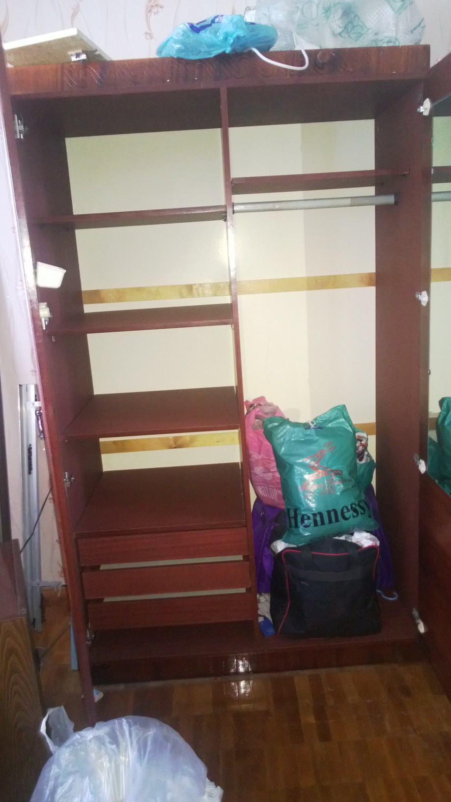 Практически новый шкаф в идеальном состоянии. На правой дверце есть зеркало. Самовывоз с Центрального района.