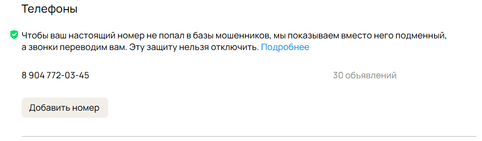 Кто нибудь вменяемый может сказать, о чем тут спор? Даёшь обявление, указывается твой подменный номер, когда тебе звонят, ты видишь реальный номер. Считаешь нужным перезваниваешь, нет, так и не узнают твой номер.