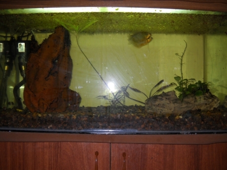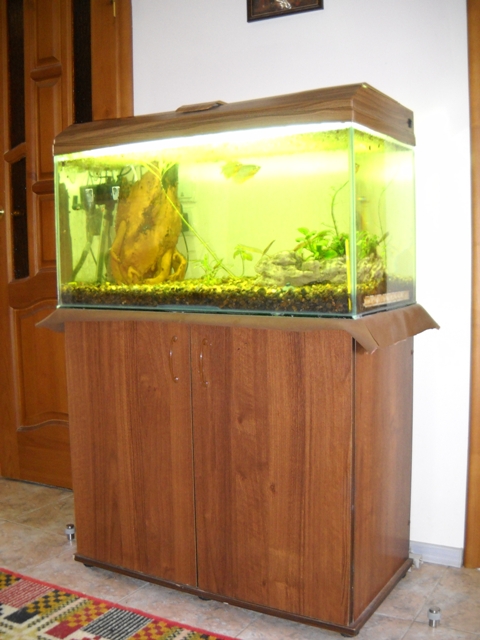 Продам аквариум с подставкой и светильником объемом 130литров, в комплекте компрессор, терморегулятор, фальшдно, грунта два ведра, камни и искуственная пещера Принимаю предложения по цене!!