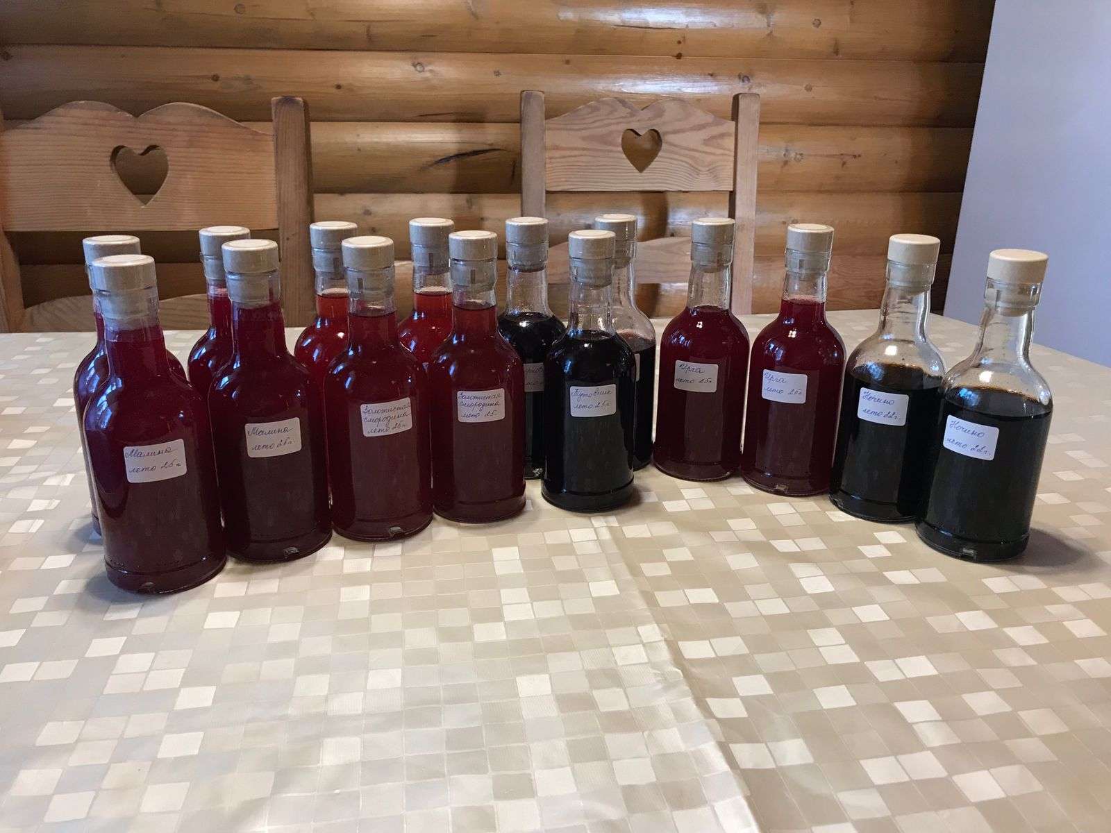 Ликёры сезона 2025 года. Делала из сезонных ягод пока была в Волгограде. Малина Золотистая смородина Тутовник Ирга Ежевика (На фото нет, ещё не разлила по бутылочкам) И ночино на фото из запасов прошлых лет.