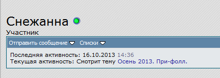 Да я в эту темку часто захожу, все жду луков или "во что одеваемся", а тут одни разборки уже которую страницу. Я сижу, читаю все, пытаюсь разобраться. Только вот ничего я не понимаю. Кто куда ходил, какие платки и рубашки ему кто продавал, кто виноват и что почем? Скорее уже жду, что все придут к общему решению)) Сегодня брильянты разбавили поле битвы. Луков брильянтов моих не будет, потому что их у меня пока что нет Но я присматриваю себе ко дню рождения колечко, только выбор мне не нравится, или я магазинов мало знаю.