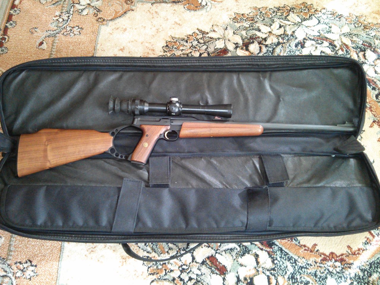 нет не разбирается, и на ОФ-93(ОружиеФермера) только отдаленно внешне и походит. Этот браунинг сделан на базе пистолета, т.е к обычному пистолету приделали оригинальный приклад, ну и соответственно удлиненный ствол. Магазин с патронами вставляется в рукоятку как на пистолетах, в момент выстрела так же назад откатывается затворная рама. экстрагируется стрелянная гильза и подается следующий патрон в патронник при возвращение рамы в переднее положение. На базе револьверов много кто мелкашки делал в гражданскую продажу, а вот на базе пистолетов, чтоб вот так сразу вспомнить- только этот Браунинг и вспоминается. Но ствол безусловно стоящий. Лично я, таких около 8-10 единиц продал в Волгограде. и сабжевй ствол на 99% "моих рук дело".