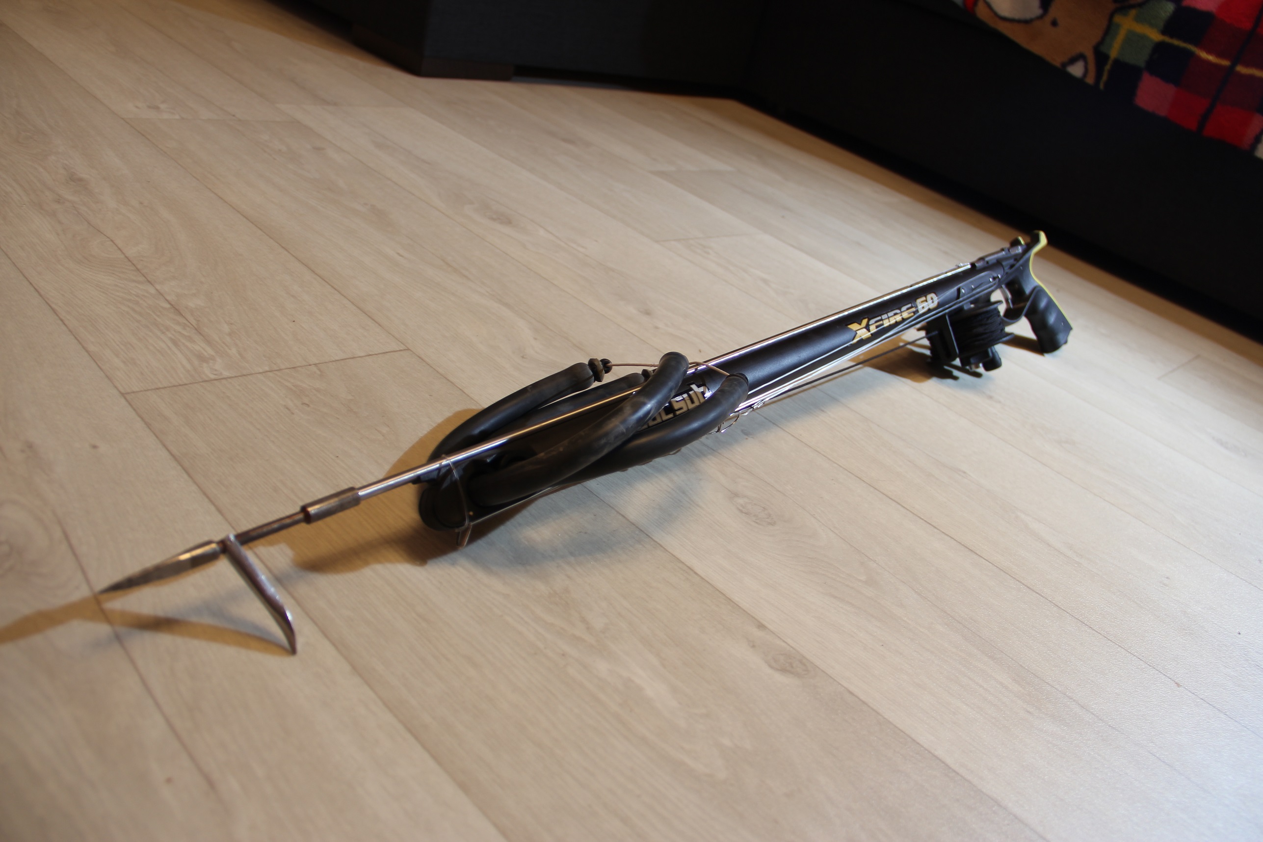Ружье-арбалет для подводной охоты X-Fire. Ствол изготовлен из легкого сплава с системой натяжения. Он представляет собой цельнонатянутую трубу с направляющим гарпун желобом. Эргономичная рукоятка с открытой линией прицела со встроенным спусковым механизмом из нержавеющей стали. Гарпун матовый из закаленной нержавеющей стали типа Sandvic диаметром 6,5 мм. Тяги диаметром 17,5 мм изготавливаются из чистого высококачественного латекса со специальным резиновым покрытием черного цвета, предохраняющим от повреждений и воздействия ультрафиолетовых лучей. Зацеп для тяг шарнирный, из стерженьков, соединенных ступенчатой пластиной, с защитными пластиковыми наконечниками. Минимизированный надульник, открытый для быстрой установки гарпуна. Дополнительно установлена вторая тяга, катушка, линь соответсвенно. Стоимость 8000 рублей. ATTACH]143076[/ATTACH]ATTACH]143077[/ATTACH]