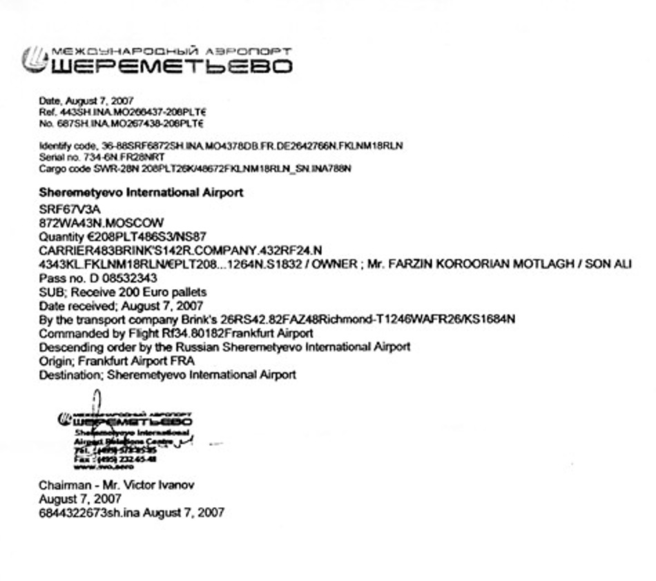 В аэропорту «Шереметьево» уже 6 лет стоит самолёт набитый 20 млрд. €