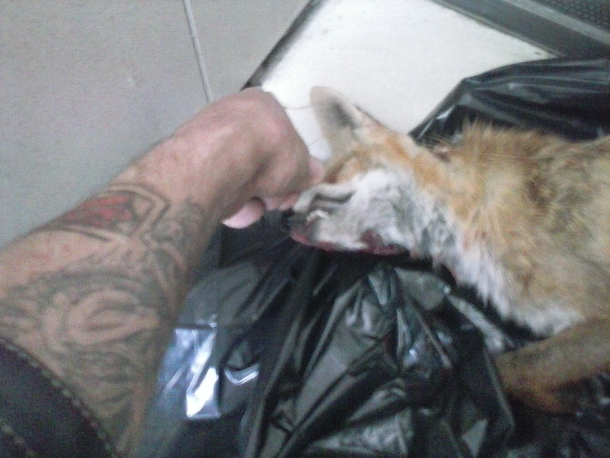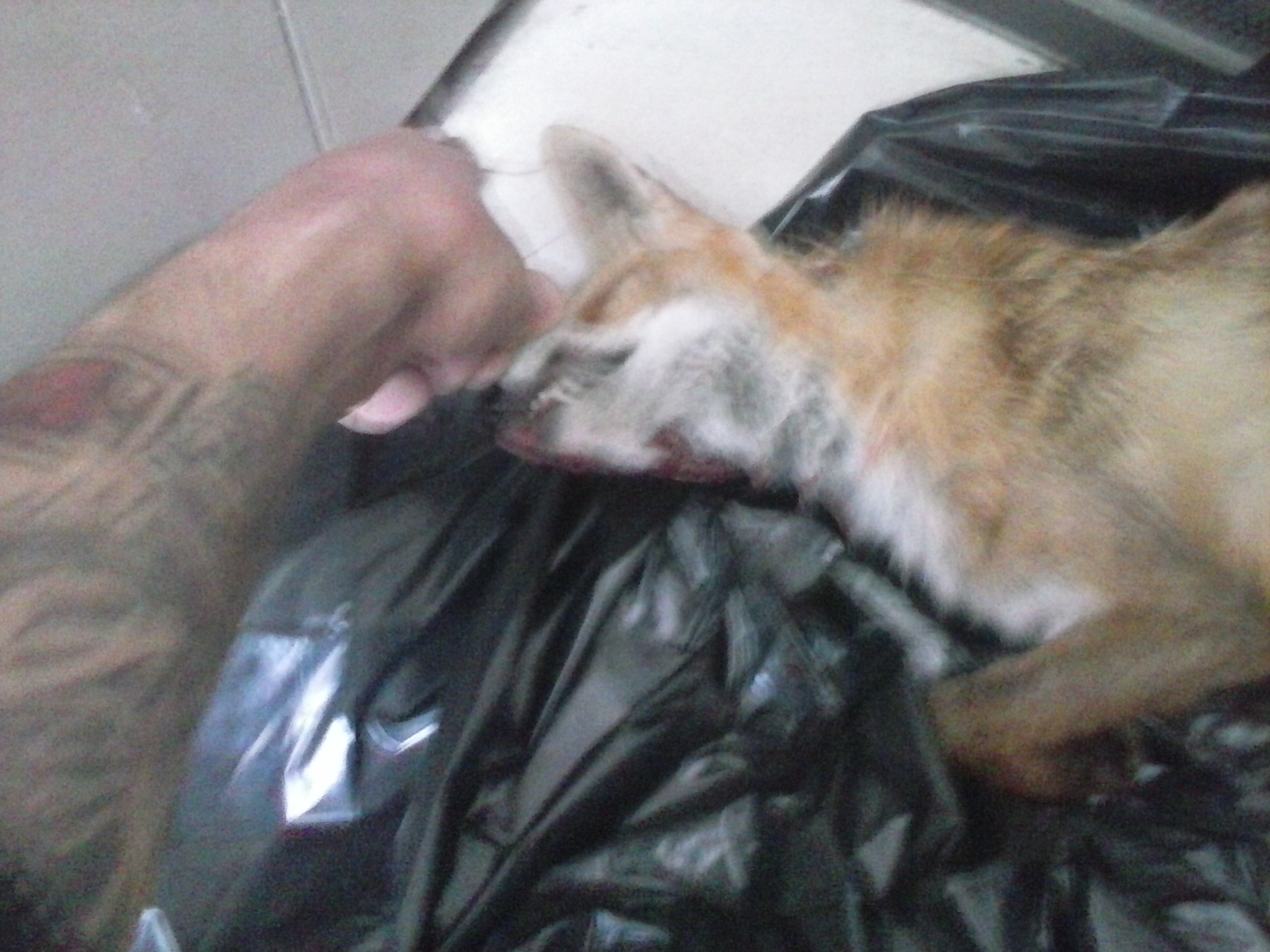 вот ещё смотри, почему не этот калибр я выбрал для охоты на лис. вчерашняя лисичка, добытая из "Ремингтон-700 спс полисе", калибра 223rеm. Такая прикольная красивая с виду лисичка и с головой у неё, если спереди смотреть, вроде всё "нормально".