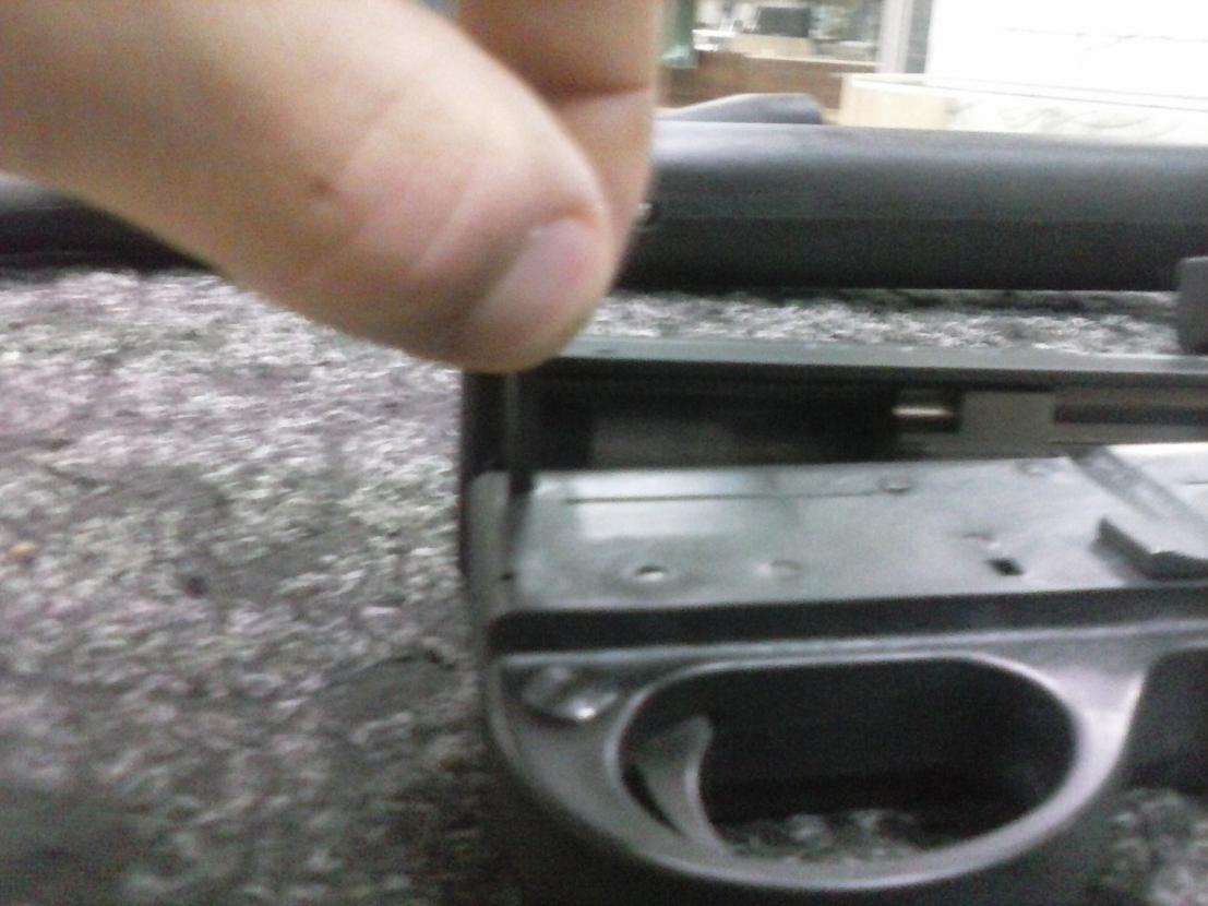 Продолжение фото 6 и 7: Крепление ствола к коробке фото 8: Заглушки штоков, с тыльной стороны коробки фото 9: Выдвинутыя для разборки штоки фото 10: Штоки и пружины, на дальнем фоне лежит затвор, где четко видно проточку в его теле, через которую проходит шток с пружиной