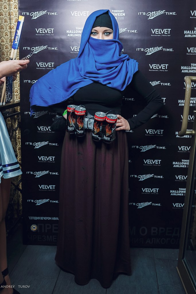 Вот такая девушка пришла в этом году на этот праздник в одно заведение волгограда. Сейчас она участвует в конкурсе костюмов и может выиграть какой-то не дешевый девайс. По мне, так это слишком...