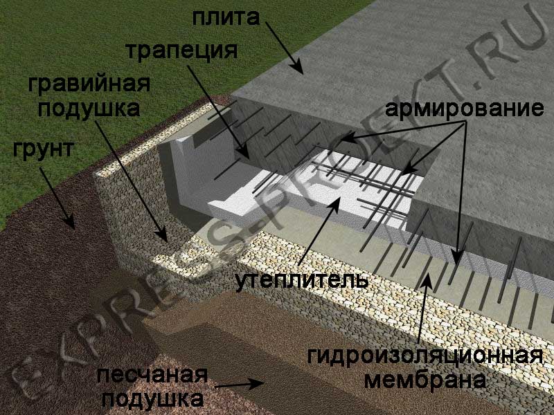 ИМХО неоправданная конструкция. Залить 60-100 м3 бетона в землю для небольшого дома... я сейчас анализирую свою стройку и многое можно было сделать проще, дешевле, практичнее. 3,14-2,71, правильно говорит. что достаточно ленточного фундамента, я бы даже сказал, что столбчатого фундамента с ленточным ростверком (80-100 см.) и черновой пол по грунту (песок, гидроизоляция, стяжка с сеткой, ЭППС, теплый пол, сетка, стяжка). Насчет плиты как предлагает zyu-zik, я бы не был так уверен. т.к. это дорогое удовольствие (правильно залить), у нас нет (я не встречал на просторах нашего городка) хорошего ЭППС толщиной 100мм и более. А тот который у нас продается просто превращается в г*** через несколько лет и имеет маленькие размеры. И когда разговаривал со знакомым архитектором, то у него не однозначное мнение на счет такого фундамента. Он строит под МСК и там уже несколько домов с таким фундаментом пришлось ломать. Один начал съежать в овраг, другой после дождей накренился так сильно, что его легче было сломать, чем вернуть обратно в исходное положение. Но это в Московии, у нас другие грунты. И мне на самом деле импонирует такой фундамент, только вот где достать хороший ЭППС и чтоб ценник был приемлемым.