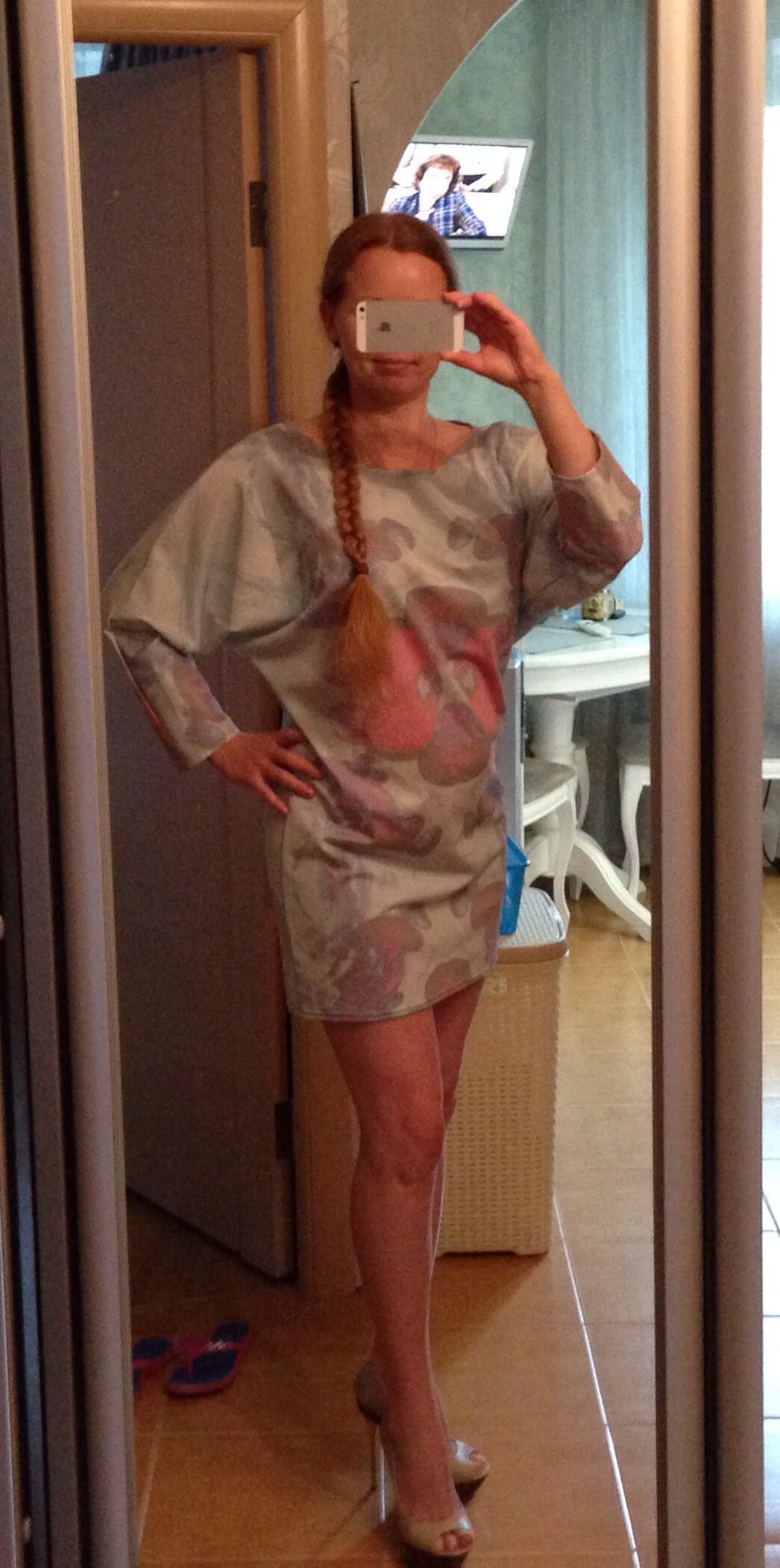 Вот на скорую руку примерила. Оно как туника с рукавами летучая мышь, если я правильно понимаю. Размер 42. Сделано в России. Аполлон Бугаков.