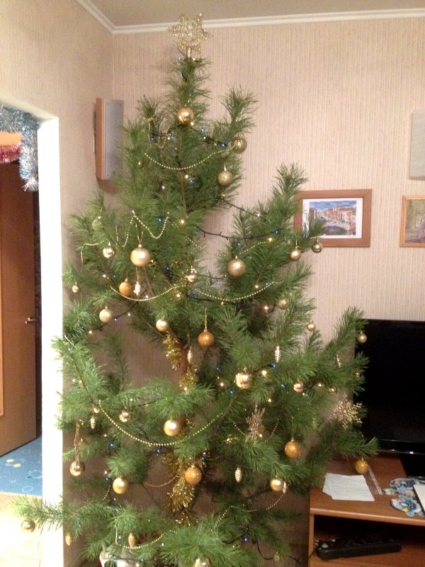 не фига себе, а потолки такие низкие??? елка прямо в потолок упирается, ну плюс 20 см подставка. потолок 240?? ужас.