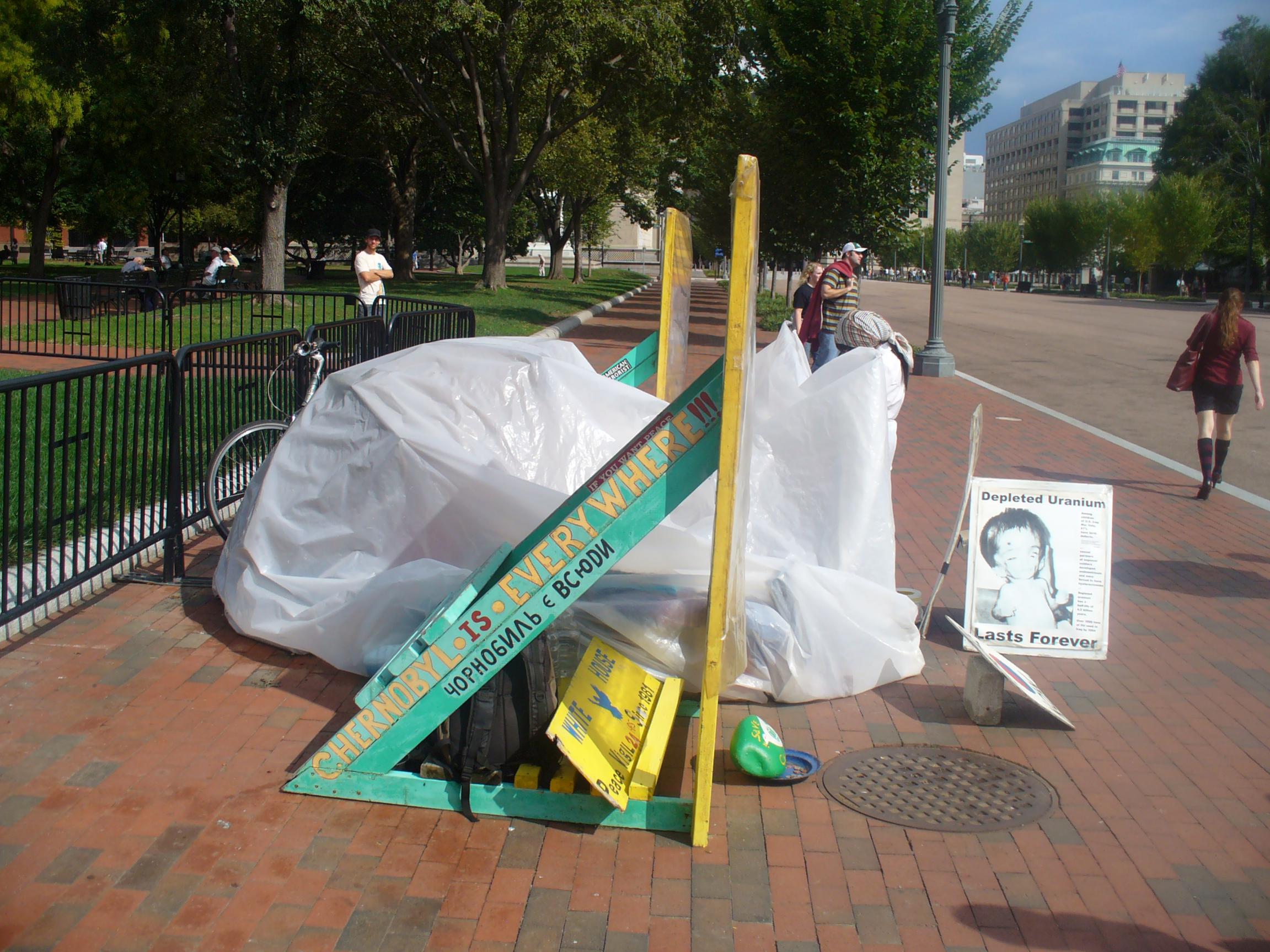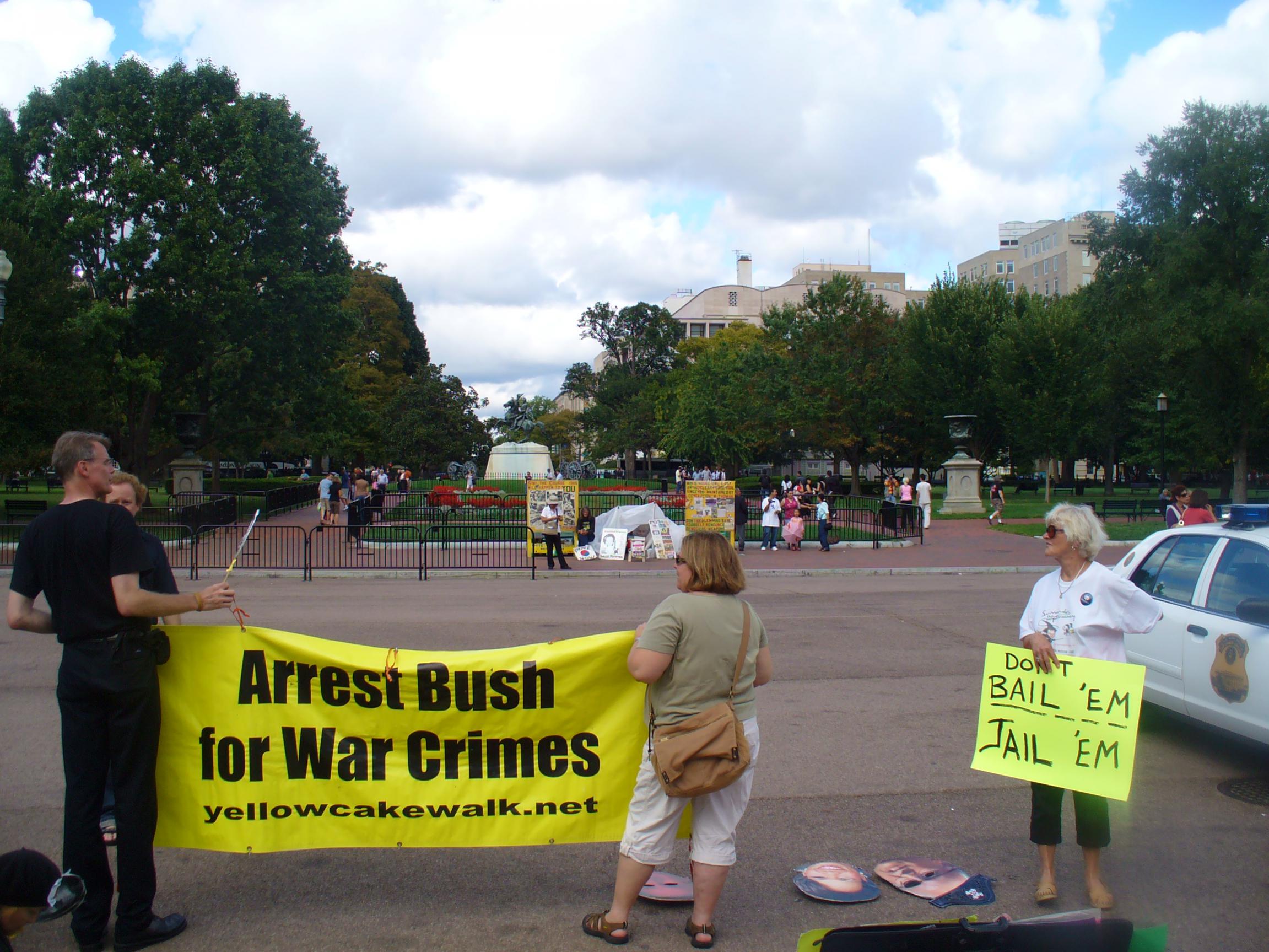 Бабка то ли с Украины, то ли с Белоруссии давно она там живет ... На фото бабкин дом и протестная акция против Буша младшего, долго в РФ можно около дома Путина так простоять?
