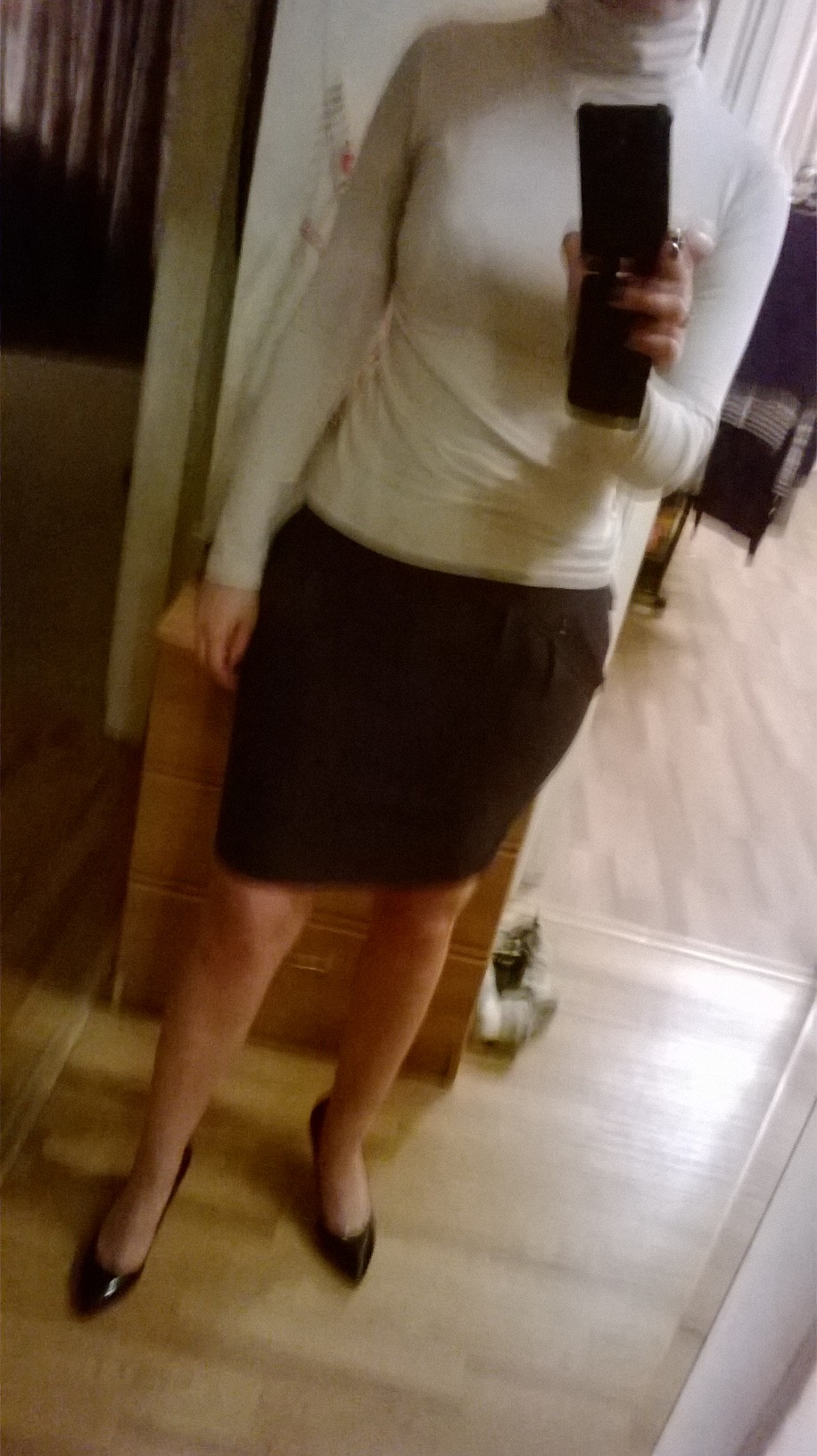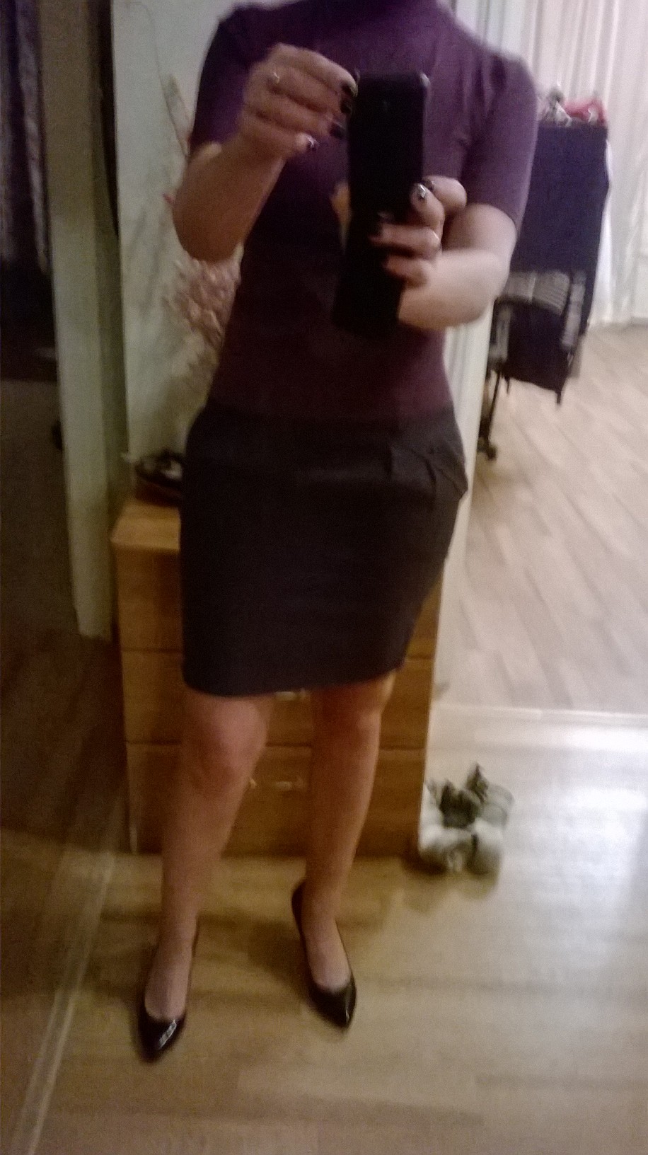 Можно и не спешить. Простая юбка, без гиперзатей. Без сезонных фишек - на все времена т.е. Только не с облегающим верхом. Это м.б. и подчёркивает фигуру и притягивает взгляды, но стилистически простит. Взрослит - я бы даже так сказала))) Если водолазка - то свободнее, свитером такая водолазка. Если верх всё же облегающий, то напрашивается ещё и жакет или кардиган.