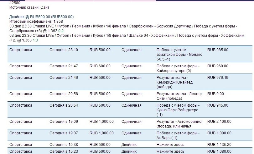 Вениамин, какие крестики? Скрины глянь. Ставки идут на одиночные события, в которых по большей части я уверен. Всё зависит от того, насколько умело ты проанализировал событие, всё ли предусмотрел, получил достаточно информации. Если проиграл, то значит где то была ошибка. Конечно бывает фарт или нефарт, судья ошибется или травму ведущий игрок получит вначале матча, но это редко достаточно. Я не азартный, я отношусь к этому виду деятельности как к работе.
