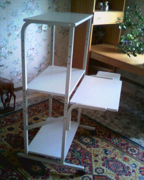 продам компьютерную стойку - компактна (с легкостью помещается в любом свободном пространстве) - мобильна (4 колеса, полный привод), имеется возможность предотвращения угона путем блока задних колес - высота всех полок регулируется, так что стойка подойдет и для взросдых, и для маленьких детей. - в комплекте есть доп.полка (не представлена на фото), подставка для мыши выдвижная - каркас железный, полки деревянные, цвет: офисный серый, сочетается и белыми компьютерами, и с черными. - легко собирается и разбирается. - вместительна. на стойке помещаются все предметы, необходимые для работы на компьютере: модем, монитор, сист.блок, клавиатура, мышь, принтер, сканер, колонки, etc.) цена: 1000 руб. торг уместен. звонить: 8-905-3314777