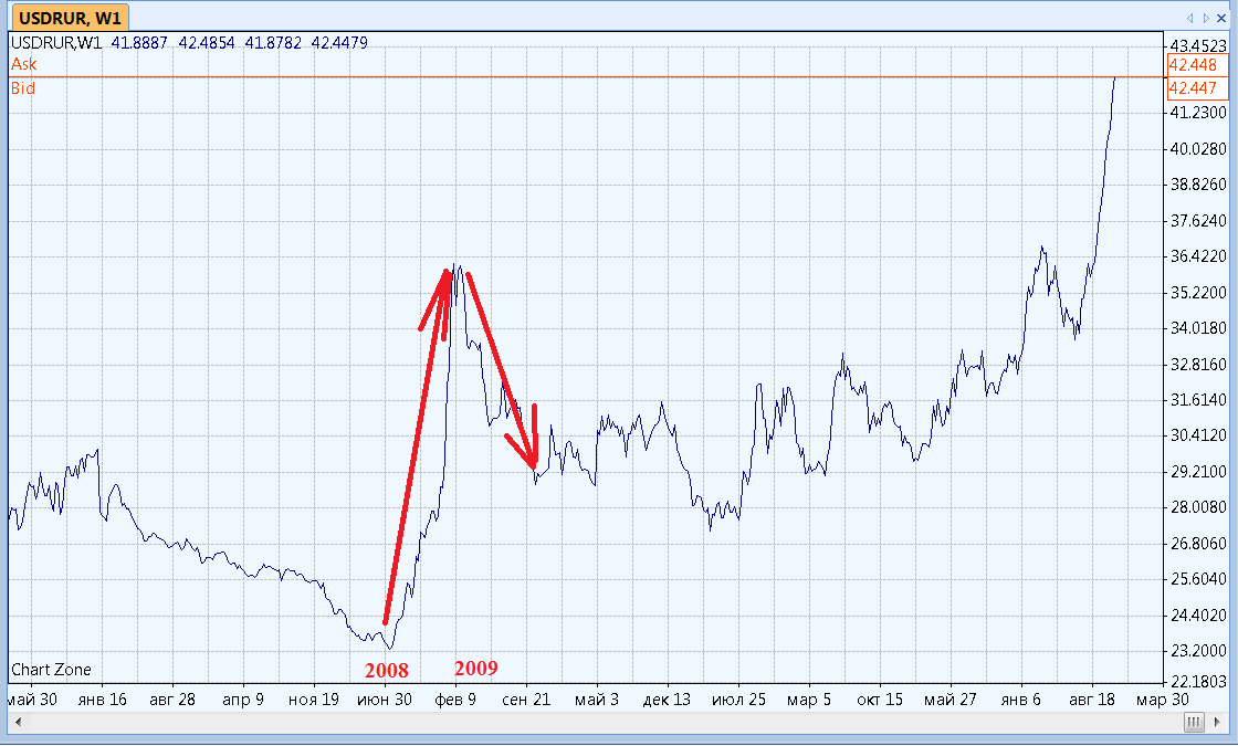 Стадии падения рубля: